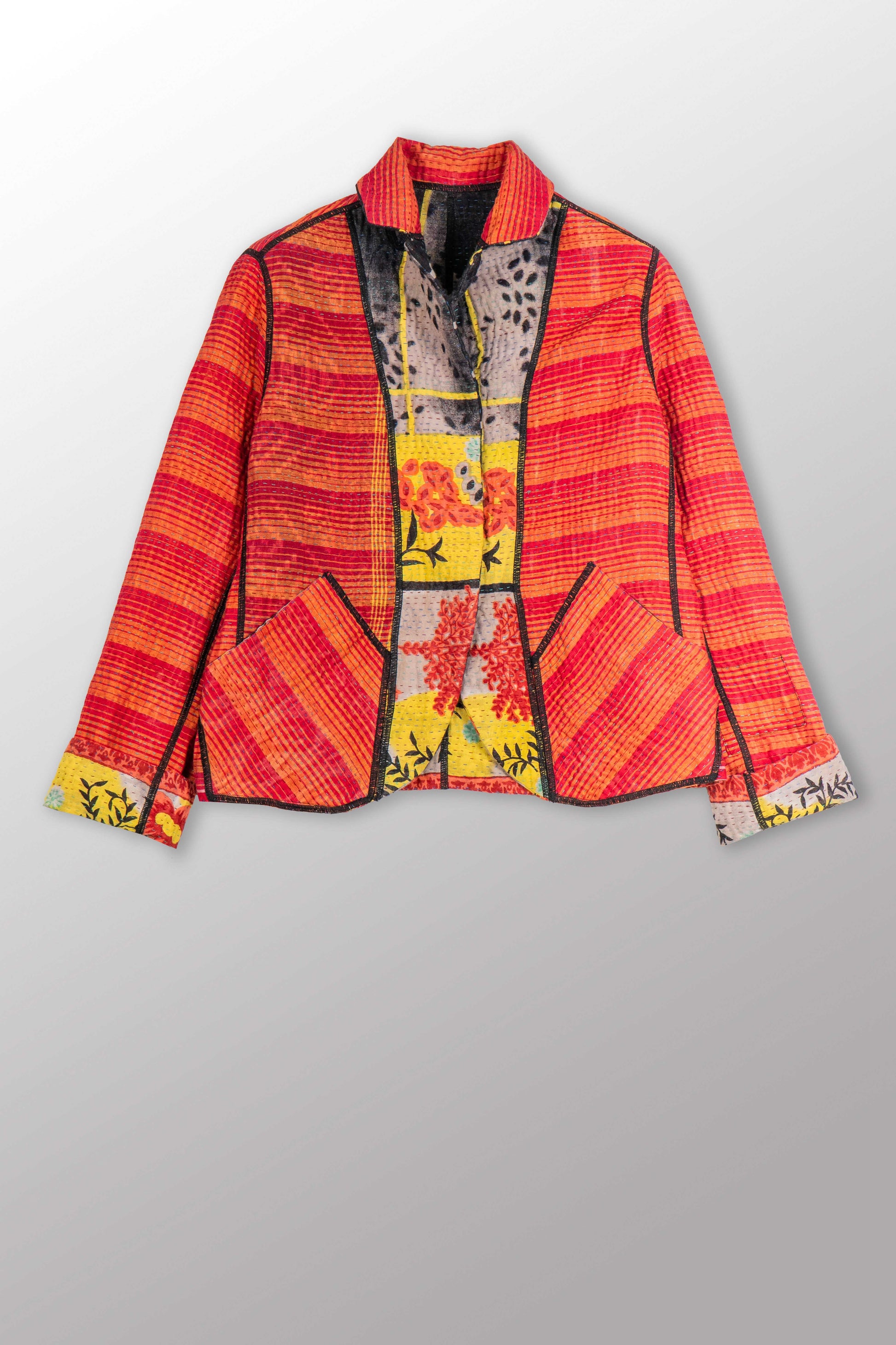 VINTAGE COTTON KANTHA CROPPED BASIC JACKET - cv4096-0003s -