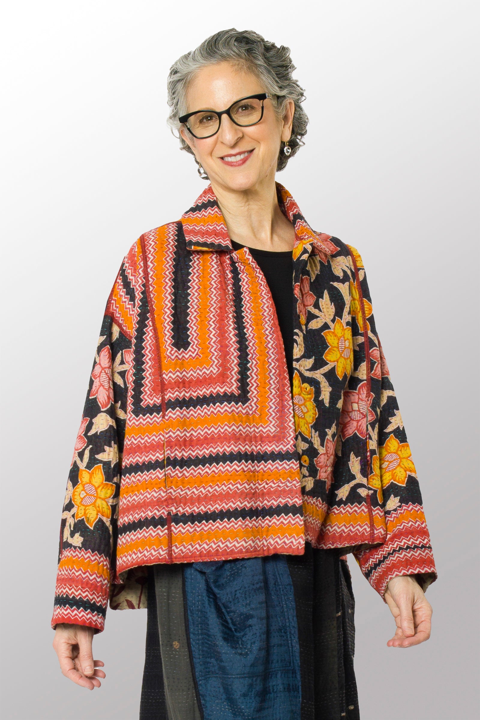 VINTAGE COTTON KANTHA CROPPED SHIRT JACKET - cv4075-0012a -