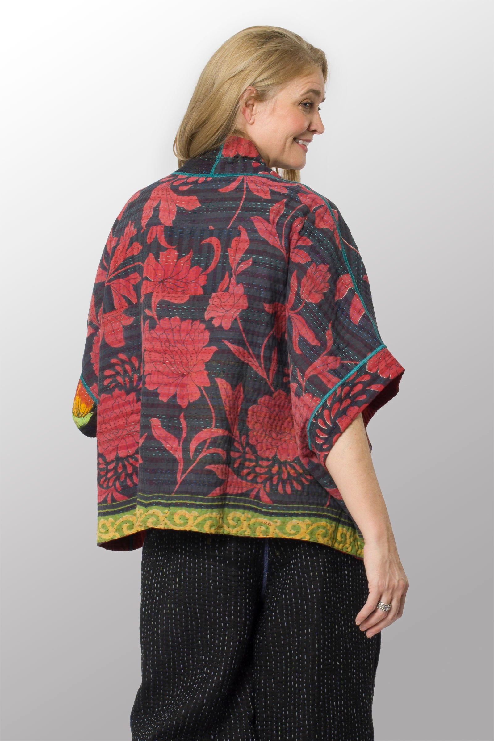 4 Layer Vintage Saris with Hand Stitches on Entire Garment - Reversible