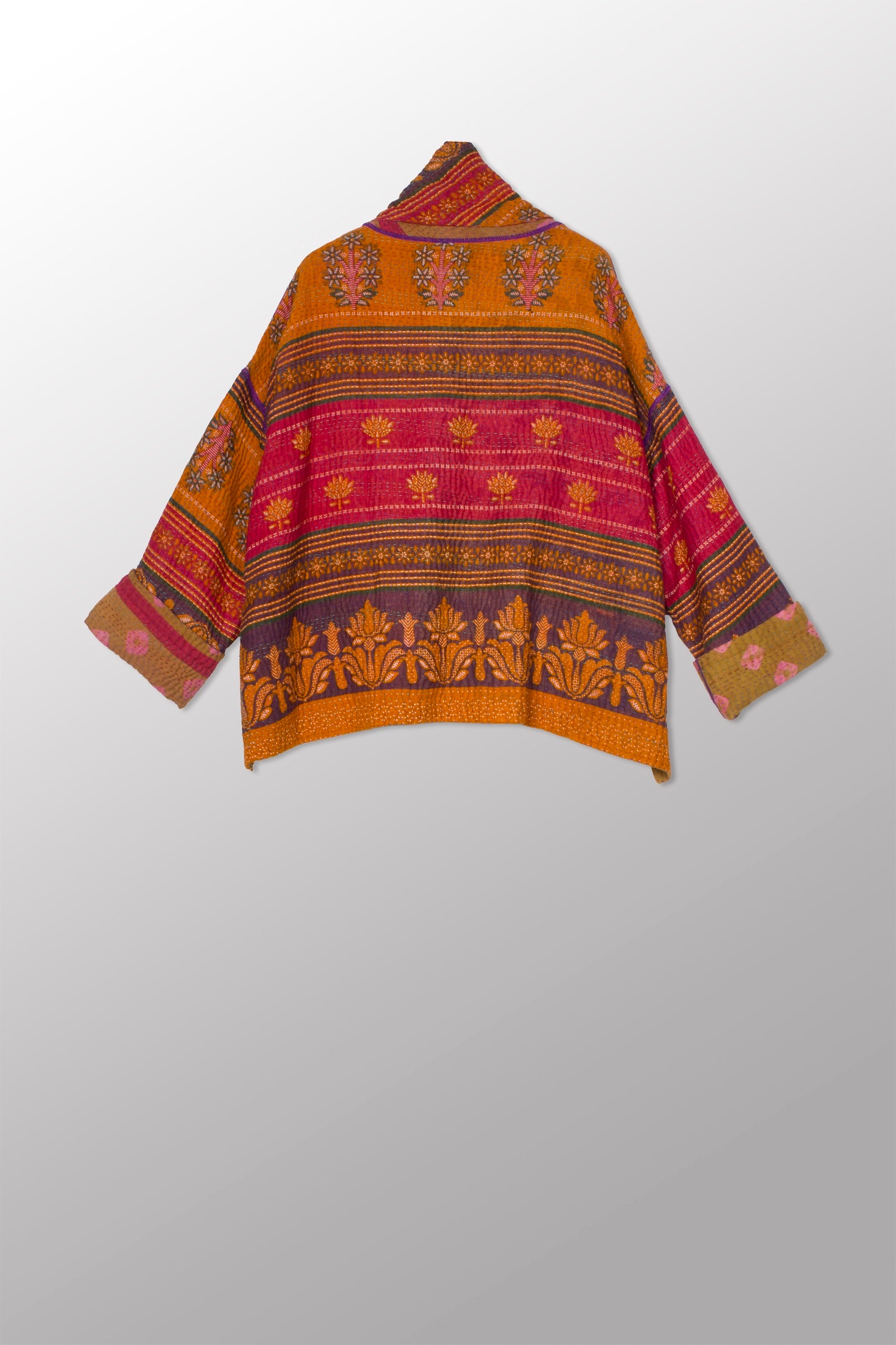 4 Layer Vintage Saris with Hand Stitches on Entire Garment - Reversible