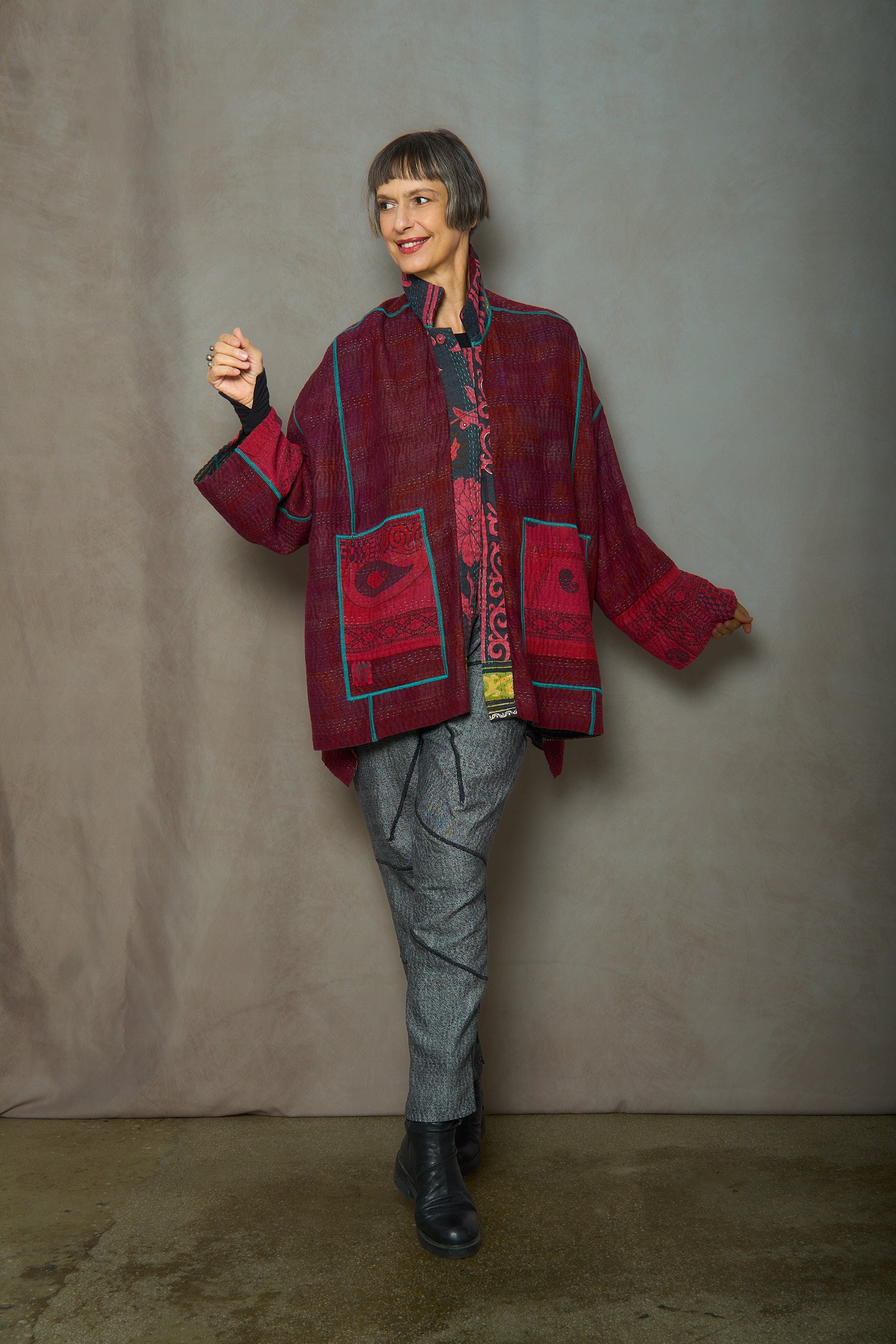 VINTAGE COTTON KANTHA OVERSIZED MINI COAT - cv4332-0042a -