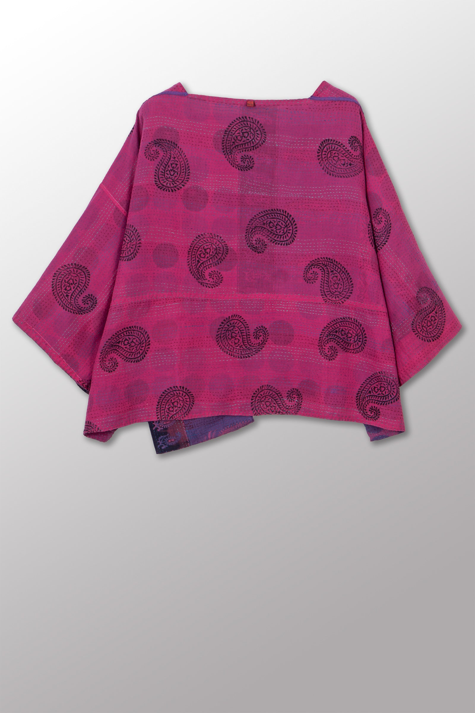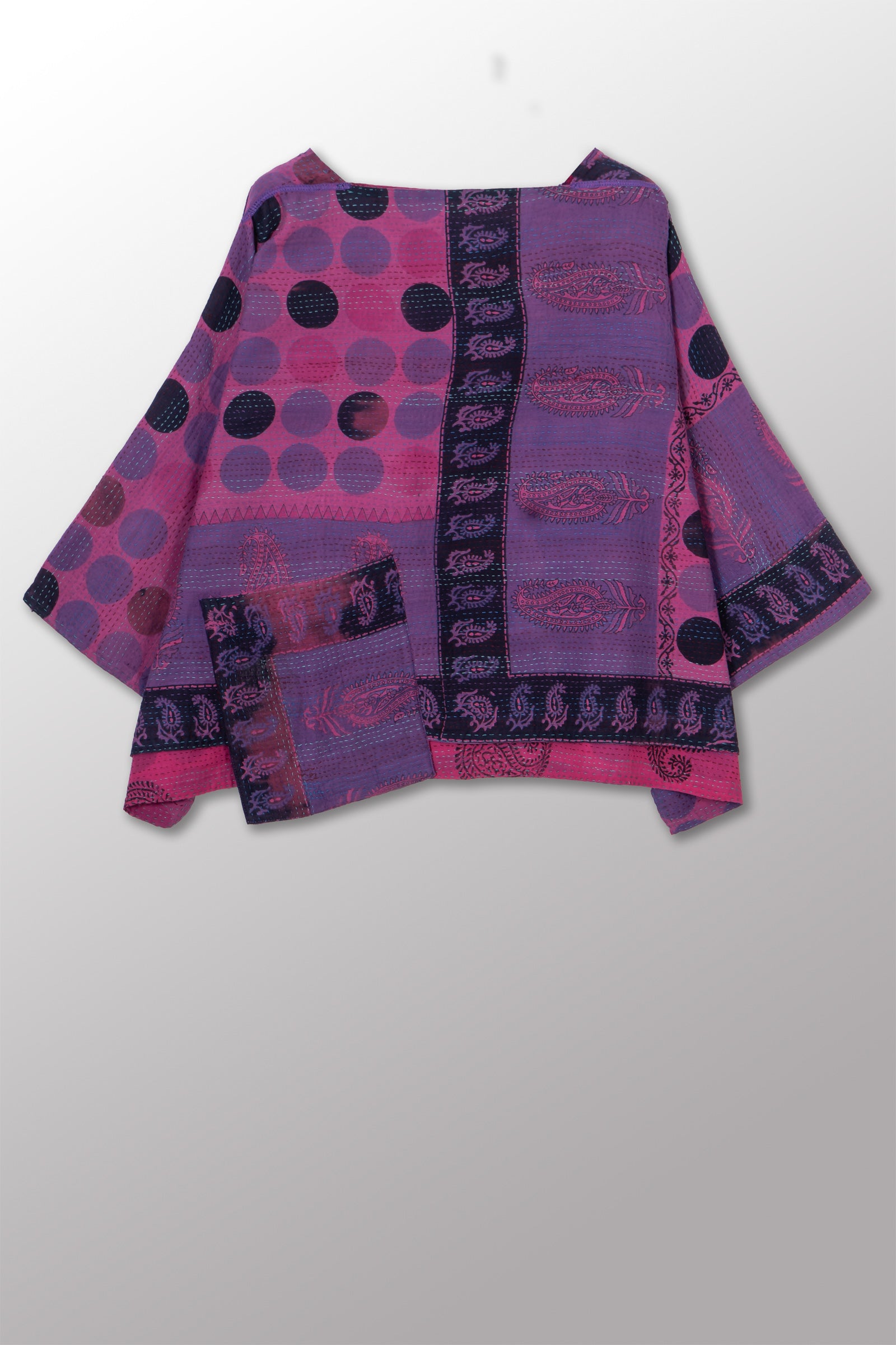 VINTAGE COTTON & NEW VOILE KANTHA 3/4 SLV. CROP TOP MIO - cn2538-0006a -