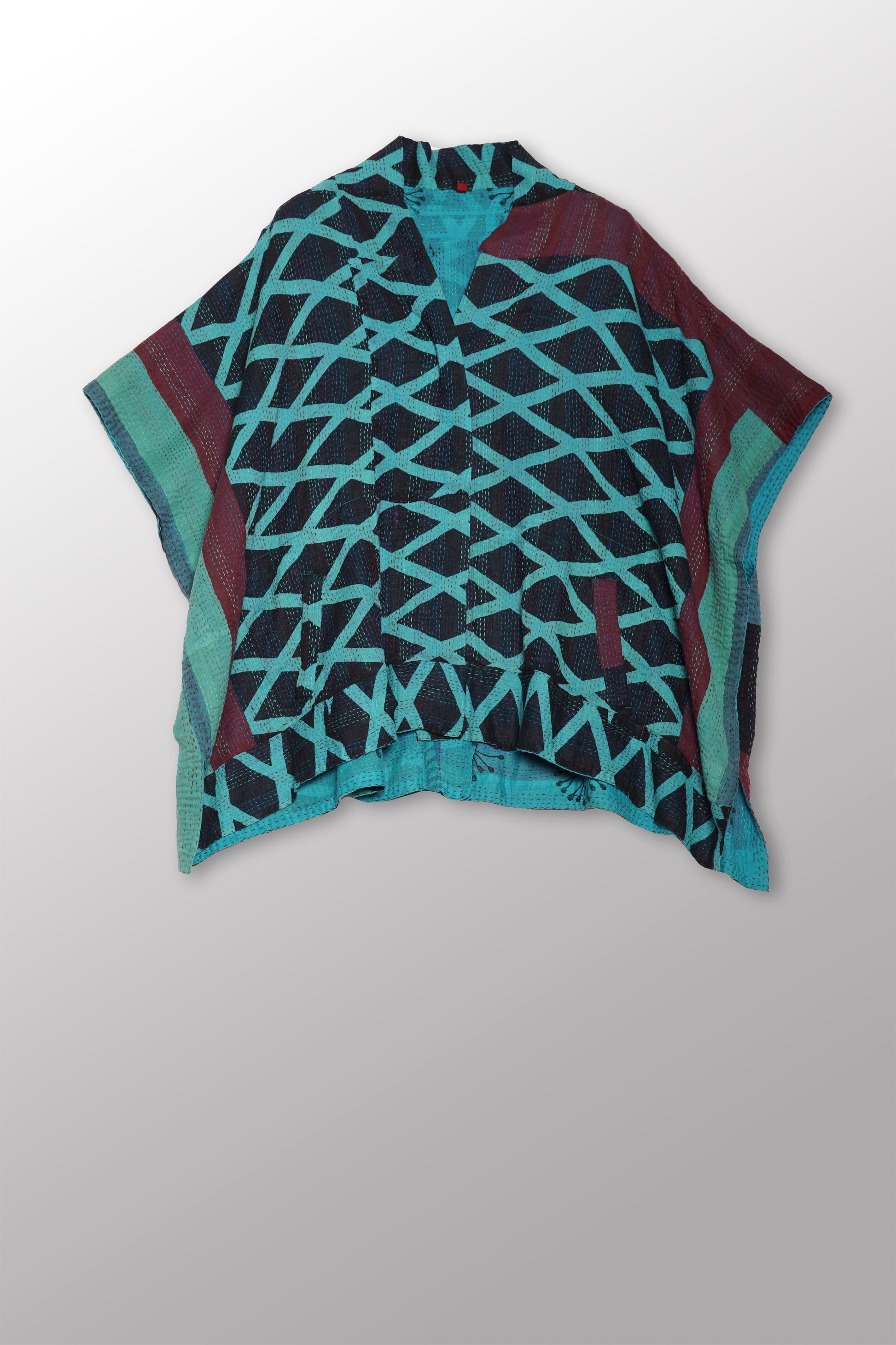 VINTAGE COTTON & NEW VOILE KANTHA PONCHO TOP - cn2568-0002a -