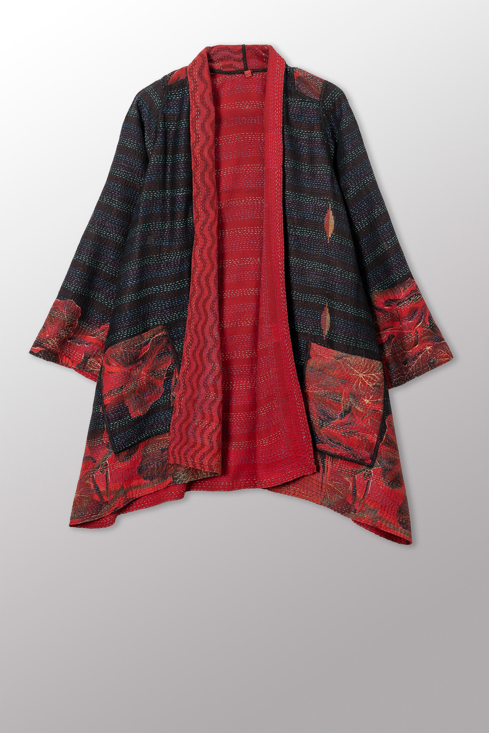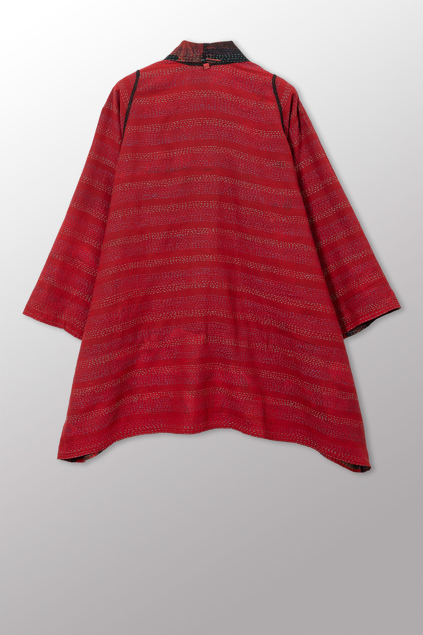 VINTAGE SILK GEORGETTE COTTON KANTHA A-LINE JKT - gc2003-0039a -