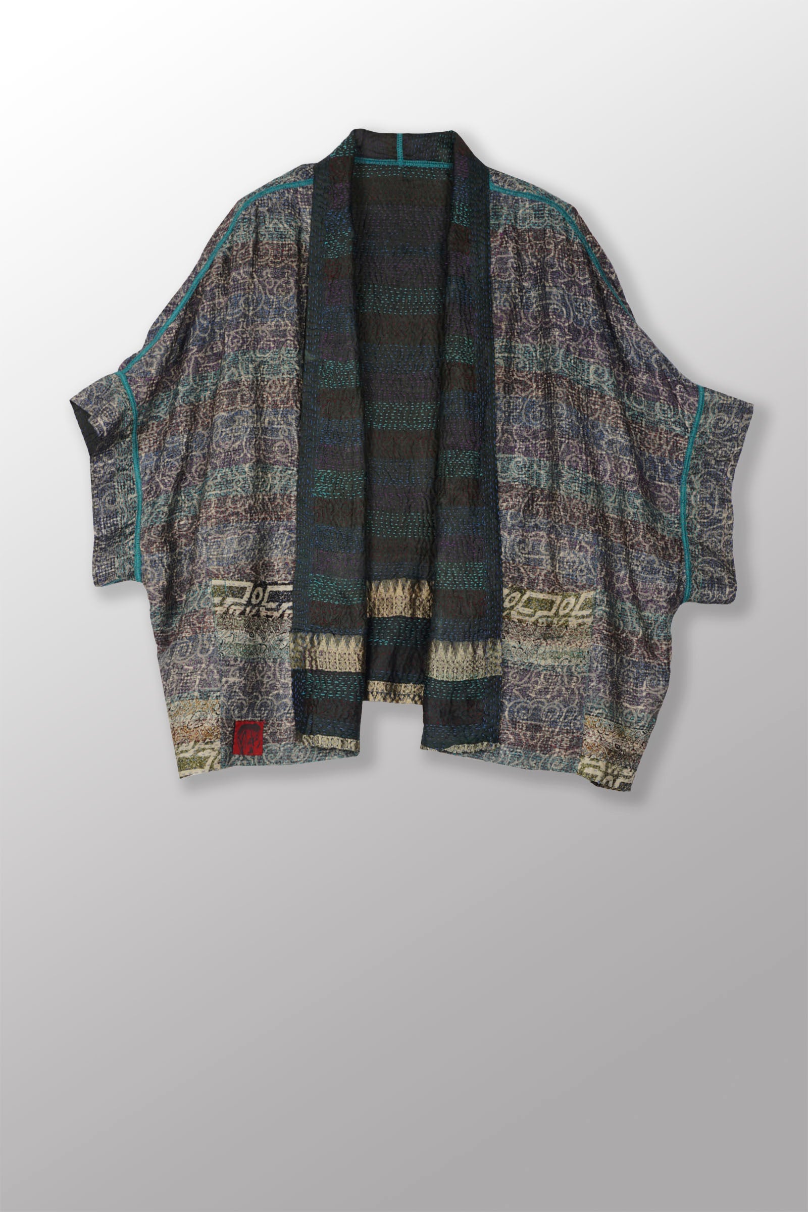 VINTAGE SILK GEORGETTE KANTHA MINI PONCHO - sg2060-0011a -