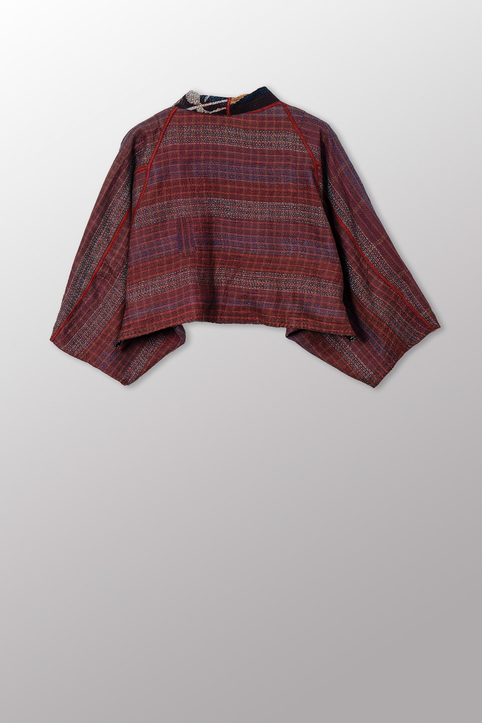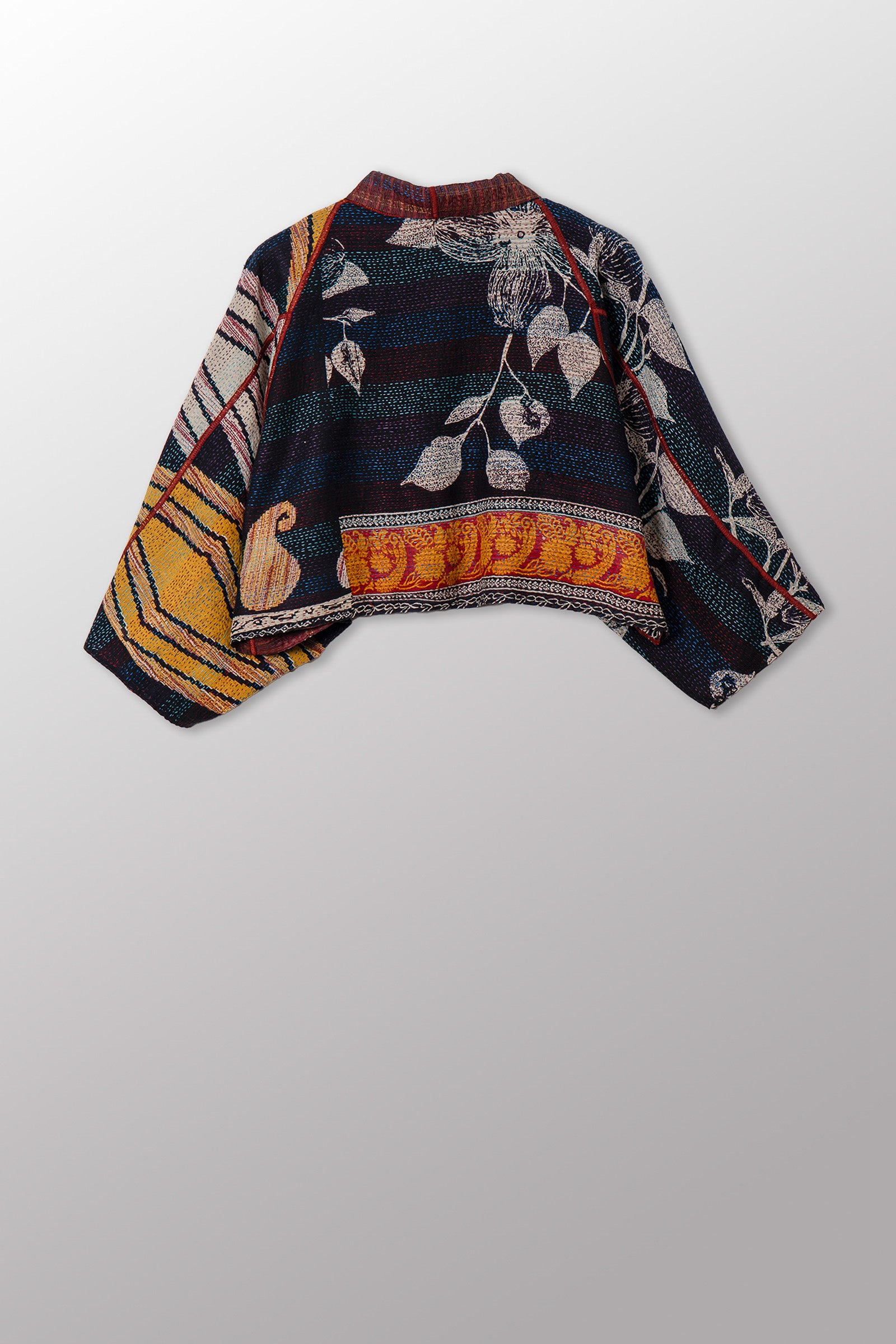 VINTAGE SILK GEORGETTE KANTHA PUFF SLV. SHRUG - sg2062-0012a -