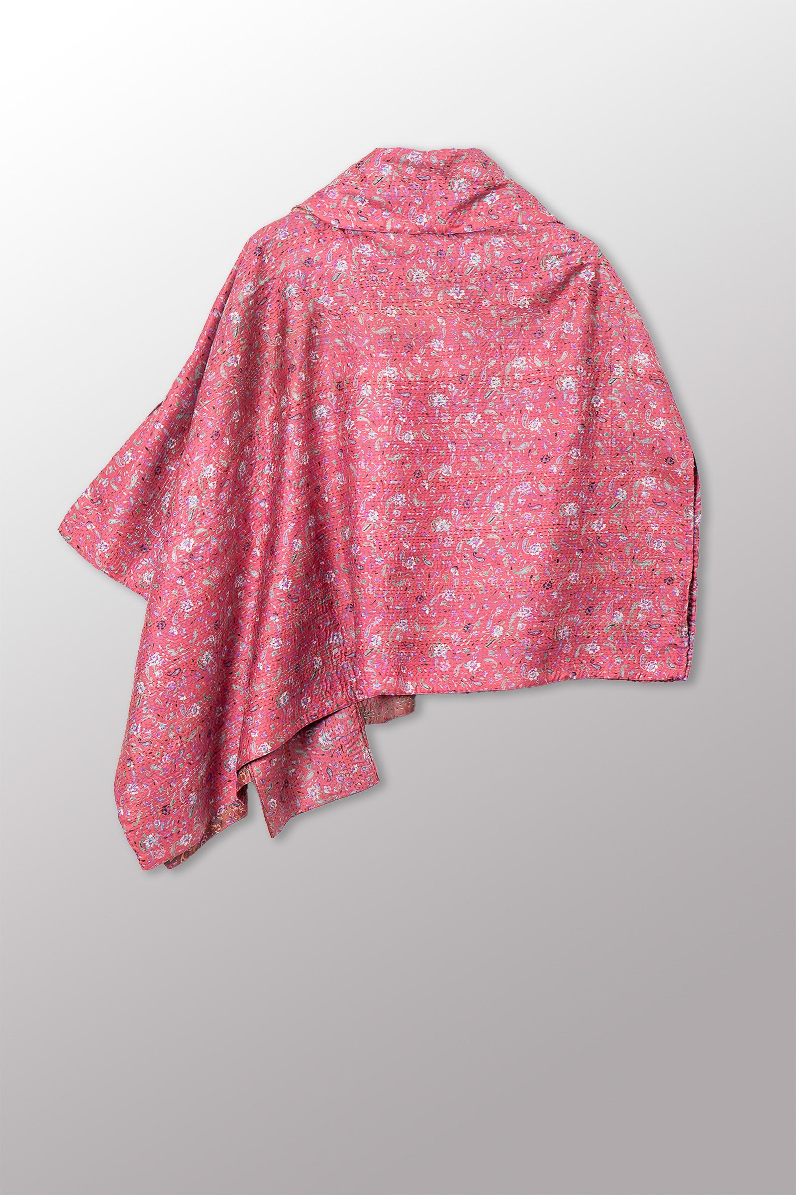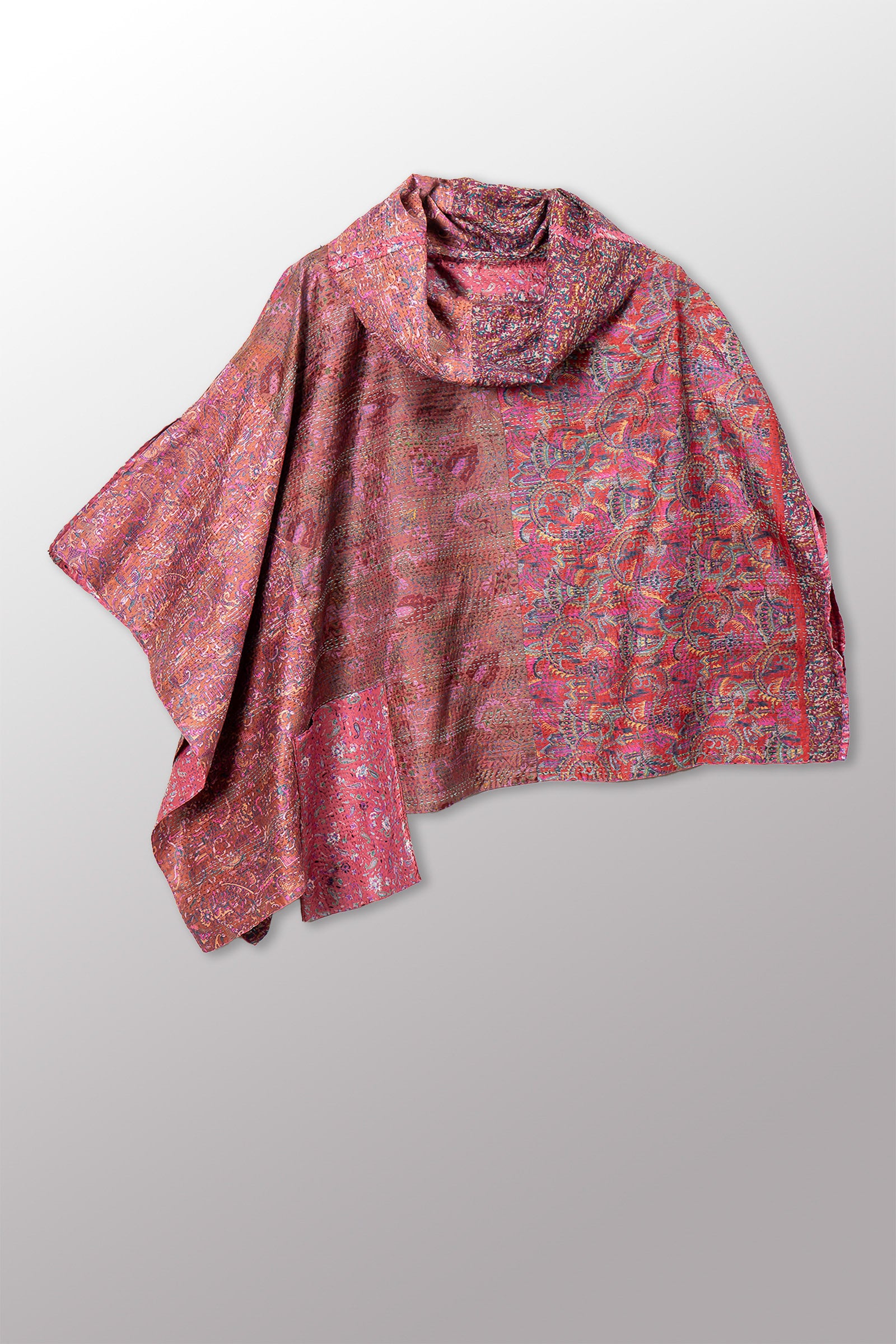 VINTAGE SILK KANTHA COWL NECK LONG CAPE - sv2842-0021a -