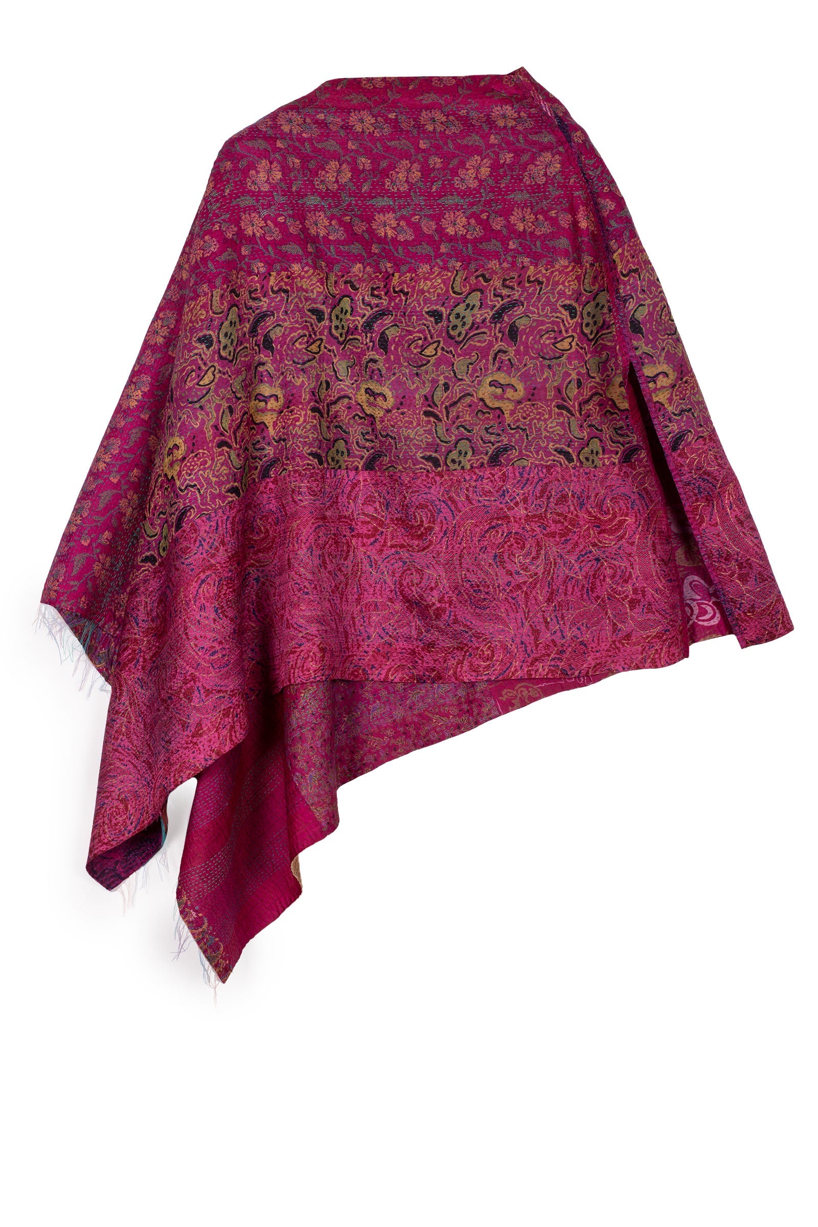 2 Layer Vintage Saris with Hand Stitches on Entire Garment - Reversible
