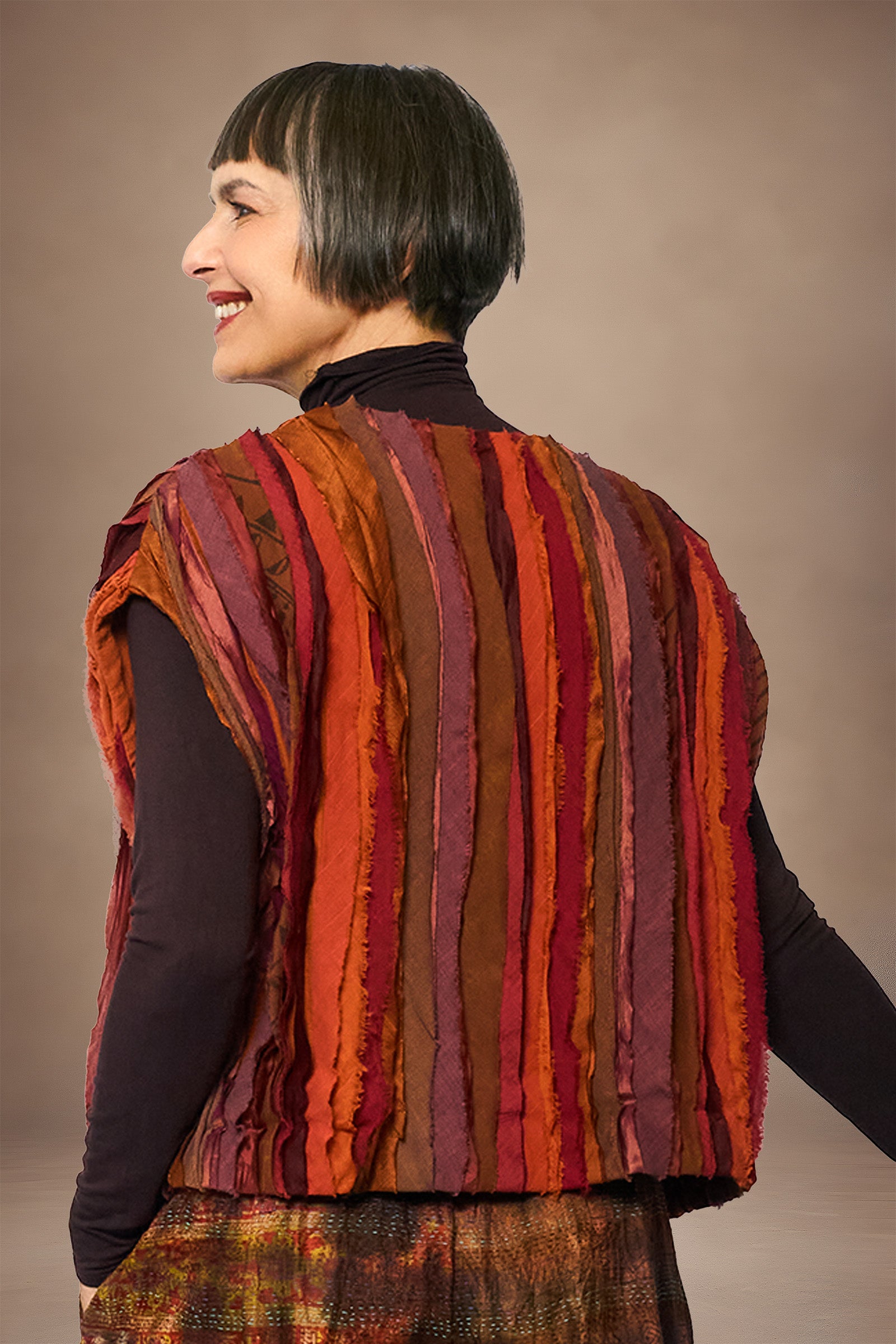 WAVY STRIPE KANTHA WIDE SHOULDER VEST - wv2245-org -