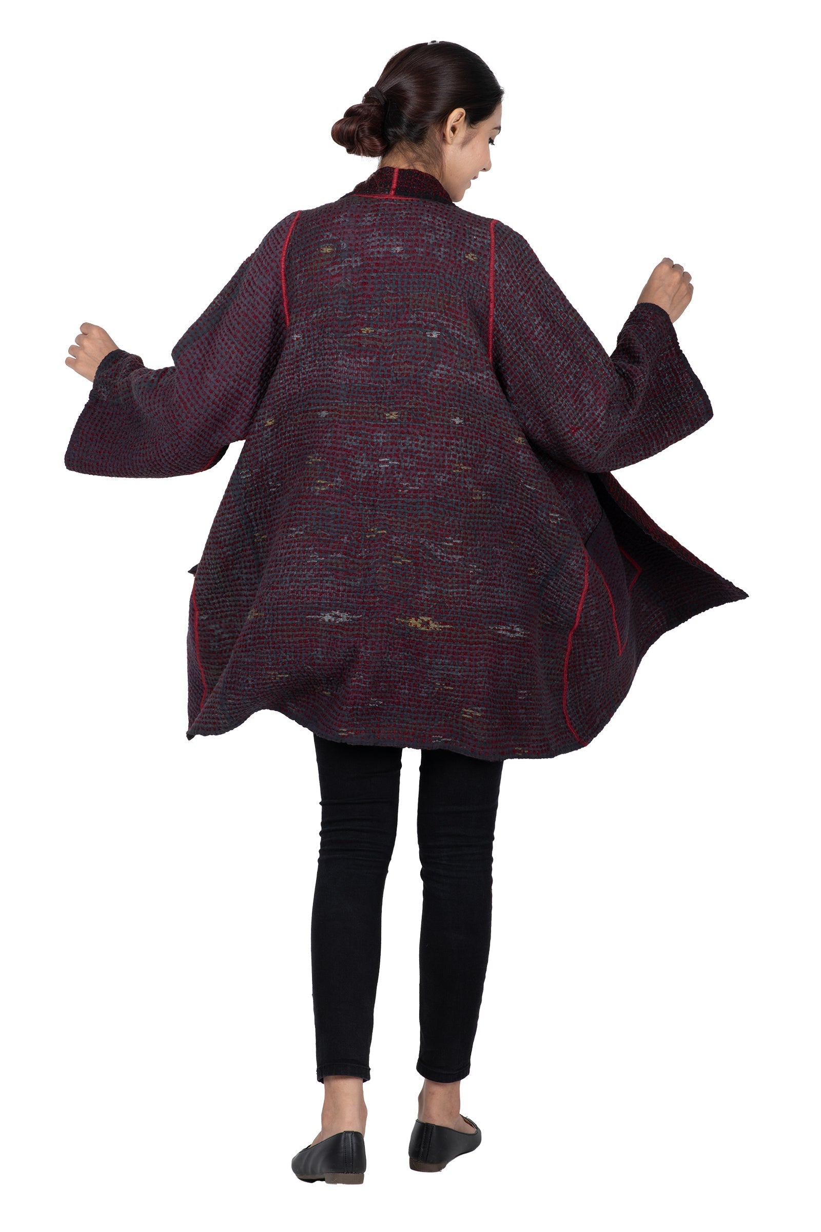 WOOL WAFFLE KANTHA A-LINE JKT - ww3003-red -