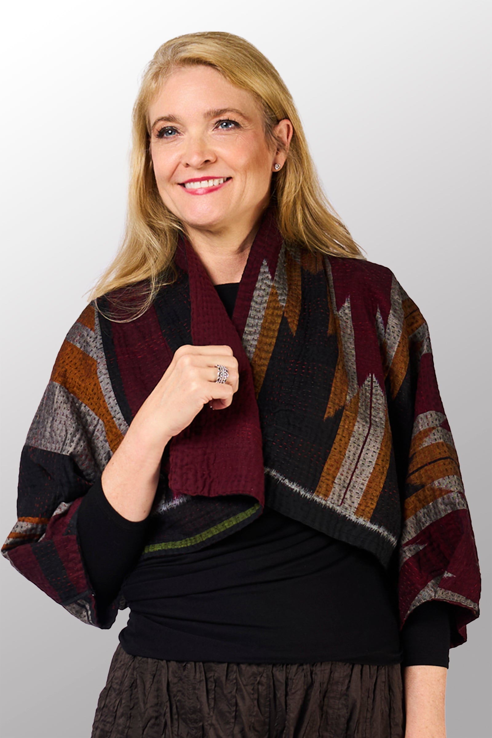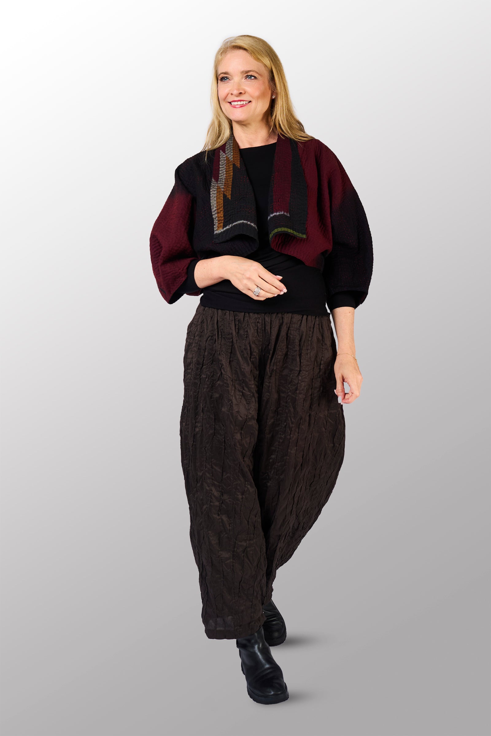 WOVEN HANDLOOM IKAT WITH OMBRE KANTHA PUFF SLV. SHRUG - wh4062-red -